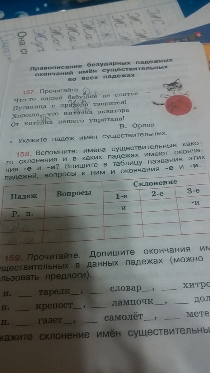 Вспомните имена существительные какого склонения и в каких падежах имеют окончания е и и ?Впишите в таблицу названия этих падежей,вопросы к ним и окончания е и и.