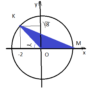 tg∠КОМ=-√2 ( так как тангенс смежного с ним угла α равен √2 tg α=2√2/2=√2)