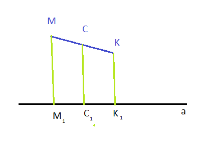 1)Отрезок MK не пересекает прямую а . Из его концов и середины С