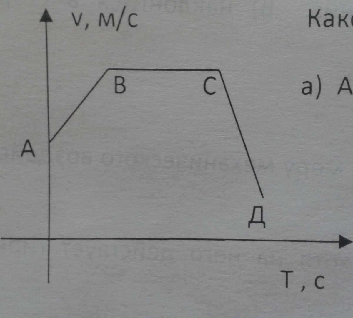 Какой участок графика скорости описывает равнозамедленное движение тела? а)АВ б)ВС в)СД.