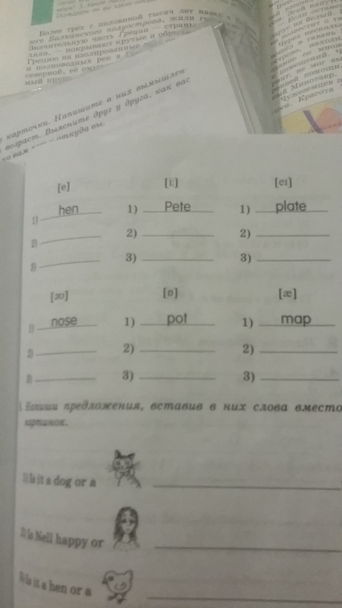 Вот слова: plate, map, pot, lake, nose, tent, ant, box, cake, Cely, hen, hand, sock, Pete, old