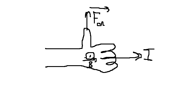 Ещё раз. Берёшь левую руку. Вытягиваешь все пальцы кроме большого. Направляешь их по направлению течения тока( он обозначен на рисунке. если не его надо искать ), ладонь поворачиваешь вокруг своей оси так, что бы вектор магнитной индукции (который идёт из N в S), входил во внутреннюю часть ладони, когда всё это сделала, отогнутый на 90 градусов большой палец покажет направление силы ампера(которая действует на проводник).