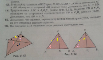 Δ АОВ- равнобедренный ( диагонали АС и BD образуют со стороной АВ равные углы по условию, отмечены желтыми дугами)