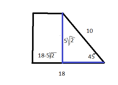 S=(a+b)·h/2= (18-5√2+18)·5√2/2=(36-5√2)·5√2/2=90√2 - 25