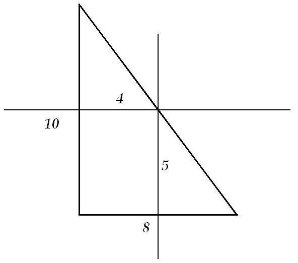 Прямые, параллельные катетам и проходящие через середину его гипотенузы являются его средними линиями. Они проходят также через середины самих катетов и равны половинам параллельных катетов, то есть 5 и 4 см
