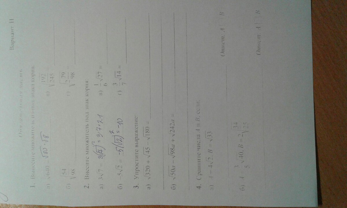 в) √(¹⁹²/₂₄₅) = √(64*3) = 8√3 = 8√3*√5 = 8√15 = 8√15