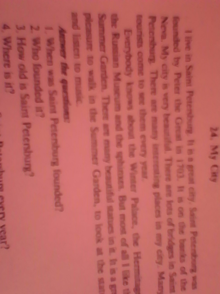 Великим в 1703 году.Это на берегах Невы.Мой город очень красивый.В СПБ много мостов.В моем городе много интересных мест.Многие туристы приезжают в СПБ каждый год.