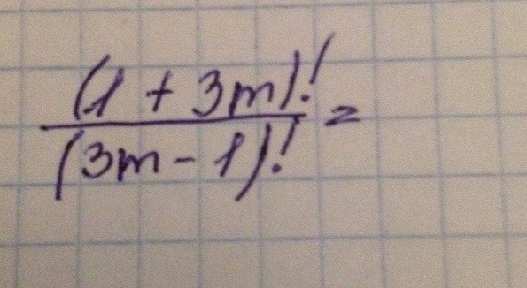 frac{(1+3m)!}{(3m-1)!}=frac{(3m-1)*3m*(3m+1)}{(3m-1)} =3m(3m+1)=9m^2+3m