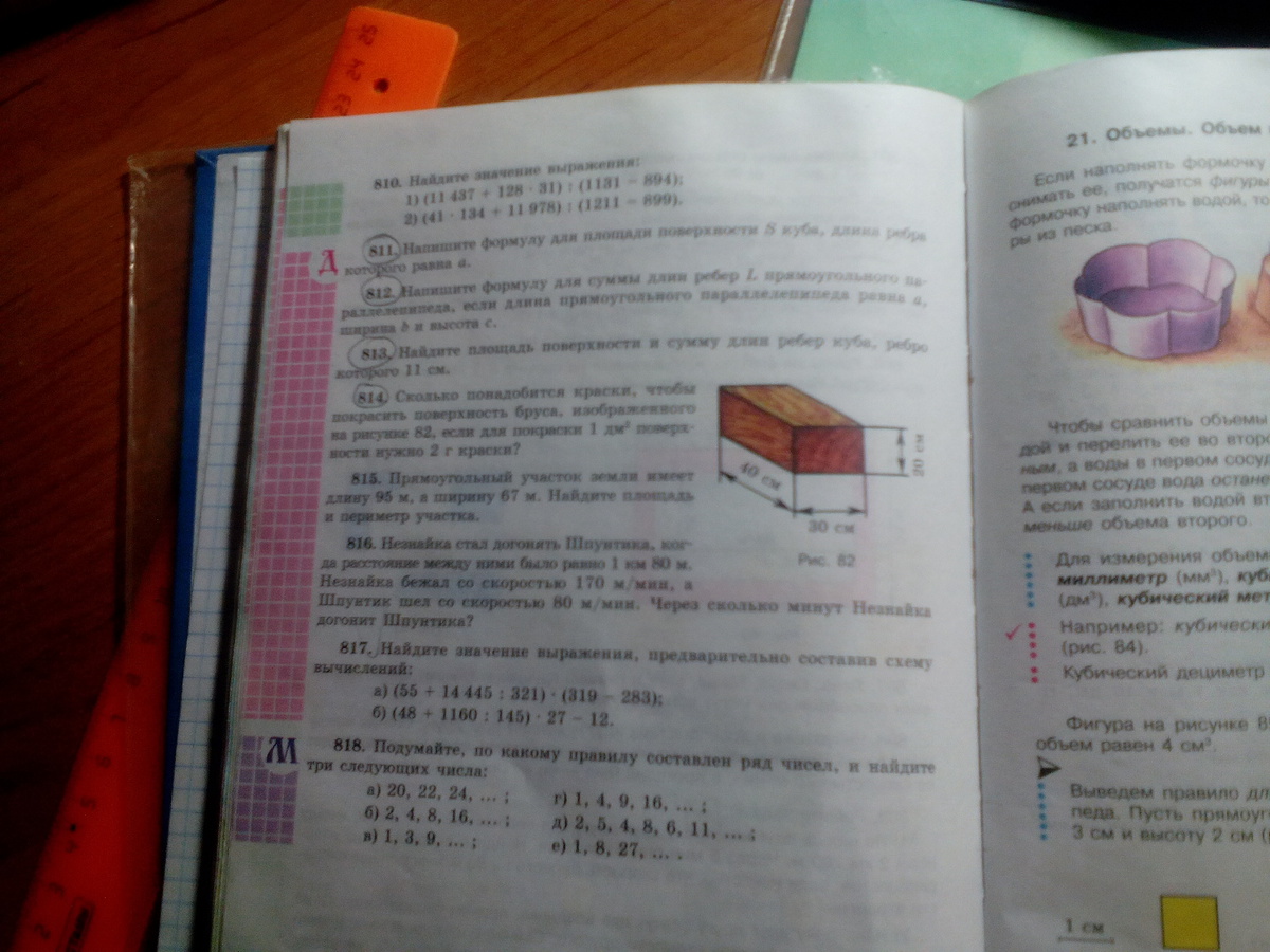 Сколько понадобится краски чтобы покрасить поверхность бруса,изображённого на рисунке, если для покраски 1дм(в квадрате) поверхности нужно 2г краски?(номер 814)