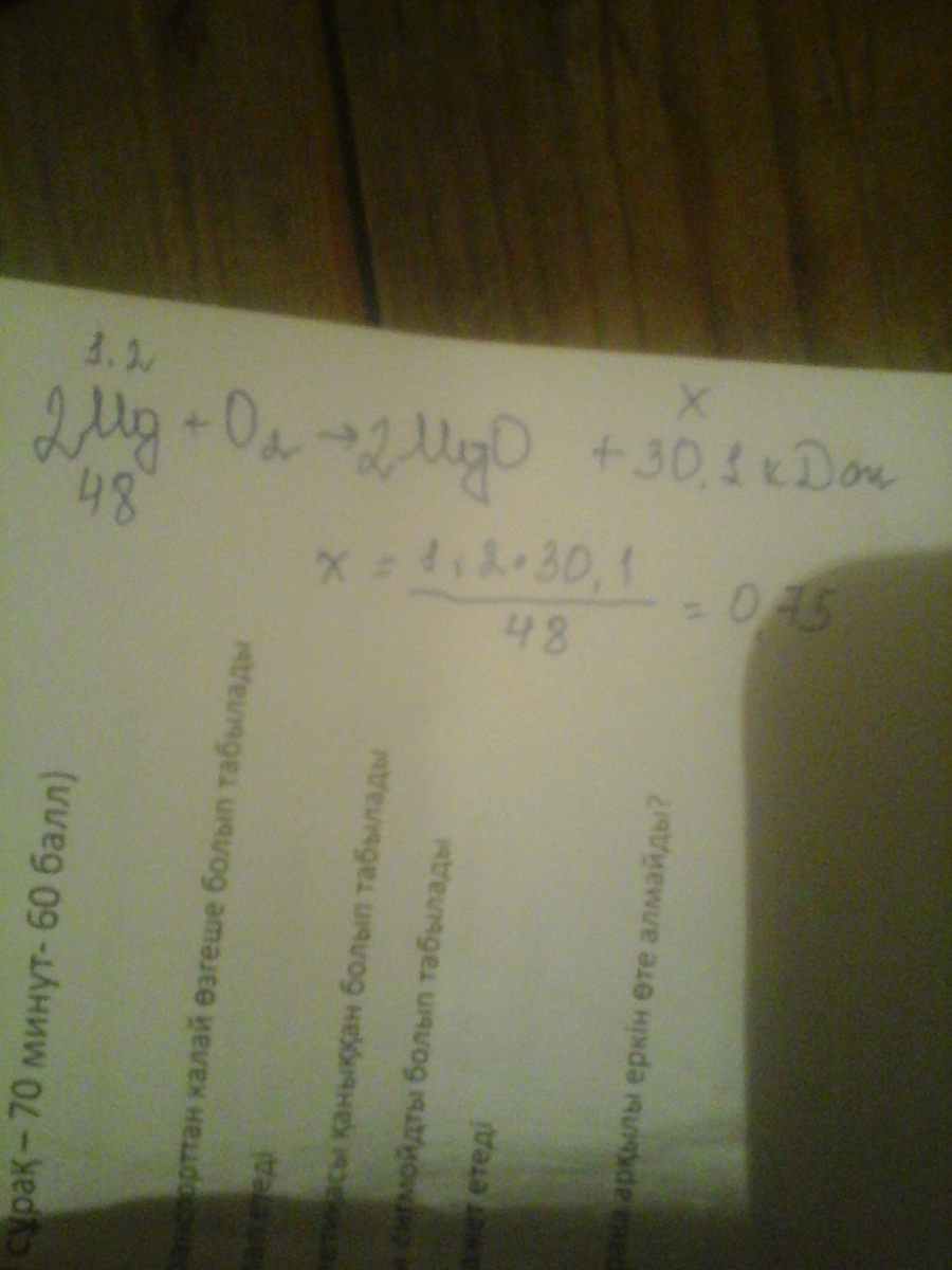 при сжигании 1,2 грамм магния в кислороде выделилось 30,1 килоджоули теплоты Вычислите тепловой эффект и напишите термохимическое уравнение горения магния в кислороде