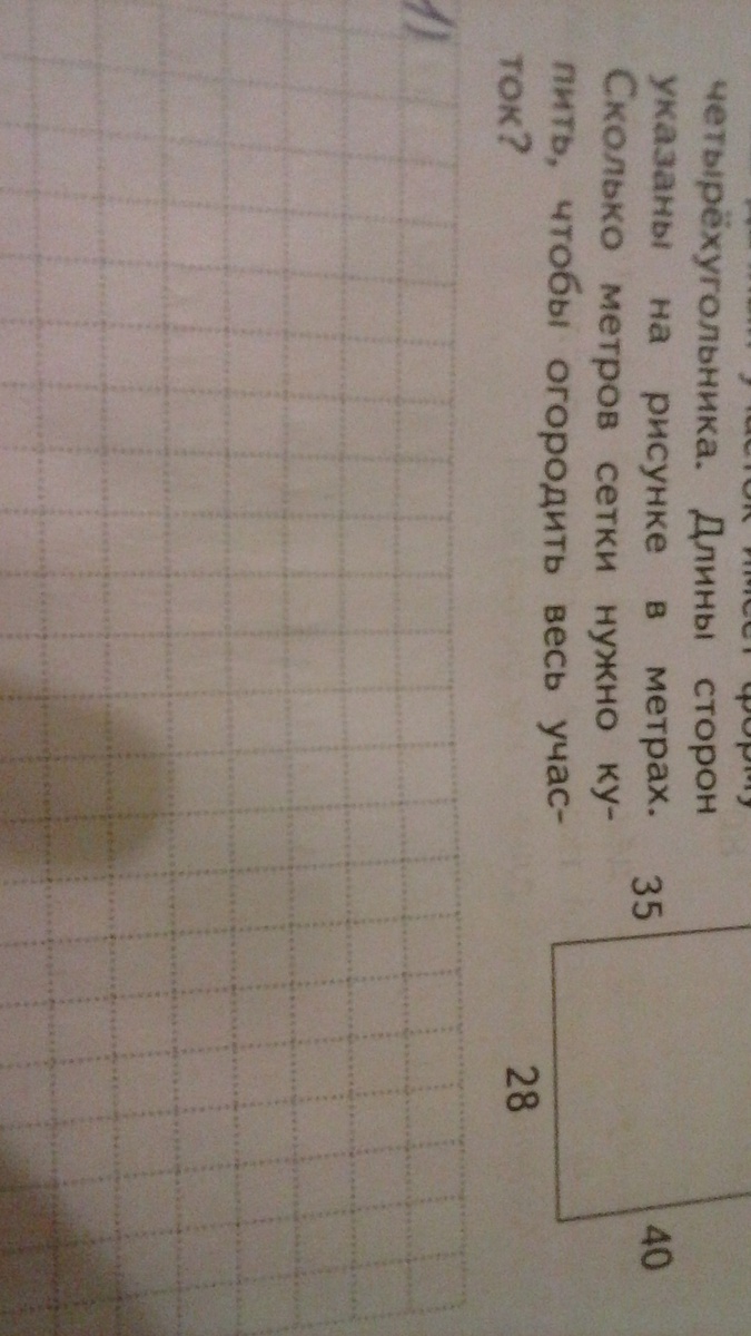 Ответ: Чтобы огородить весь участок нужно купить 129 м сетки.