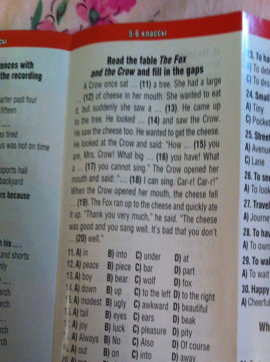 Wren the Crow opened her mouth the piece of cheese fell out. The Fox ran up t