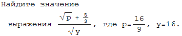 frac{ sqrt{ frac{16}{9} }+ frac{5}{3}  }{ sqrt{16} }= frac{  frac{4}{3}+ frac{5}{3}  }{4}= frac{3}{4}