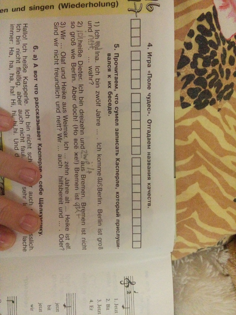 3)Wir heißen Olaf und Heike aus Weimar. Ich bin zehn Jahre alt und Heike ist elf. Sind wir nicht freundlich und nett? Wir sind auch hilfsbereit und tapfer. Oder?