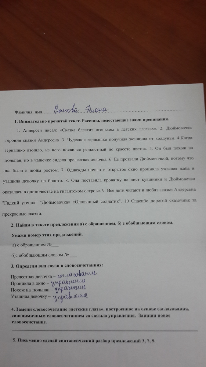 В 9 предложении ... Андерсена: "гадкий утенок", "Дюймовочка", "Оловянный солдатик"