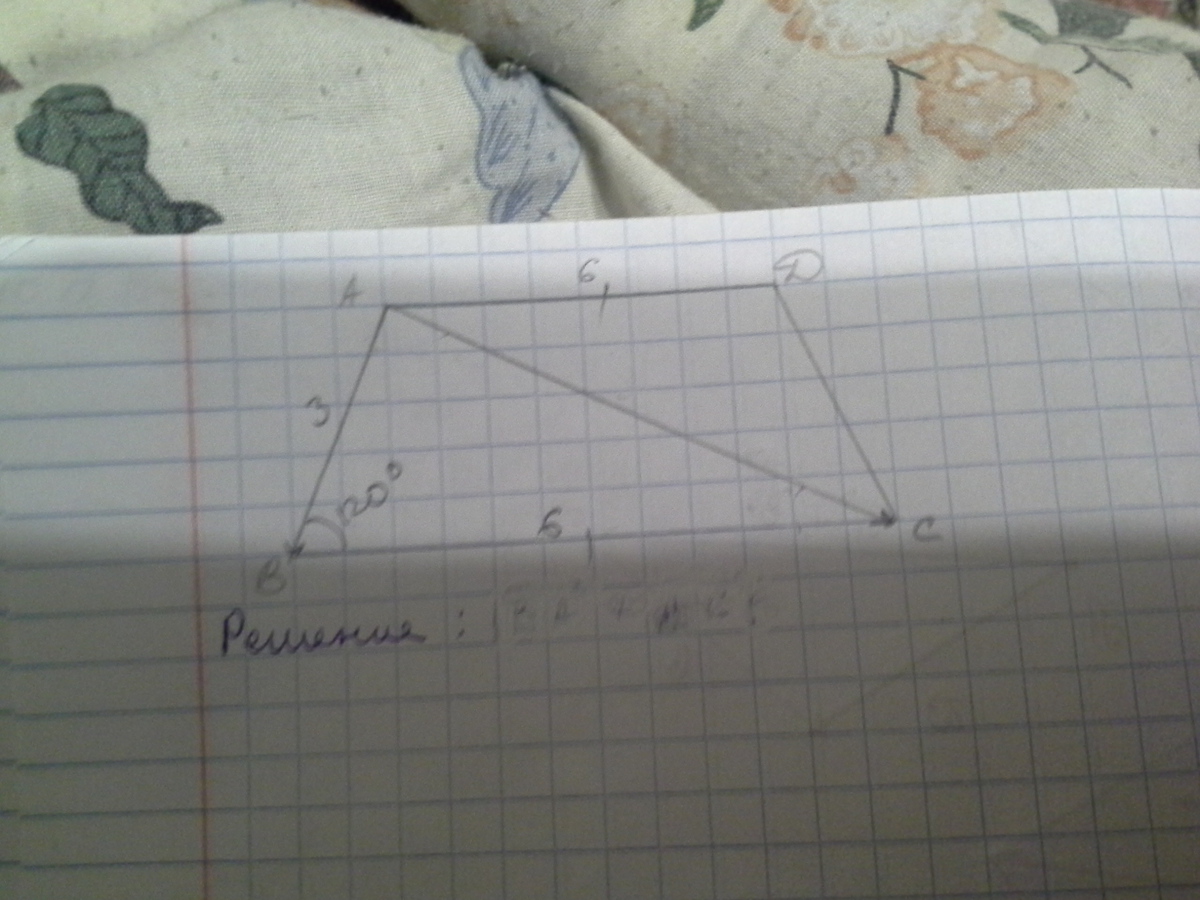 Дано: ABCD- трапеция AD||BC, угол ABС-120°, AD-6, AB-3.