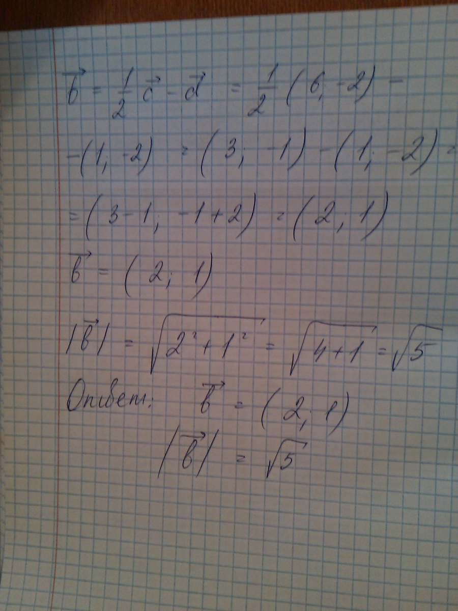 ПОЖАЛУЙСТА ОЧЕНЬ СРОЧНО НАДО! найдите координаты и длину вектора b,если b=1/2c-d, c(6;-2), d(1;-2)