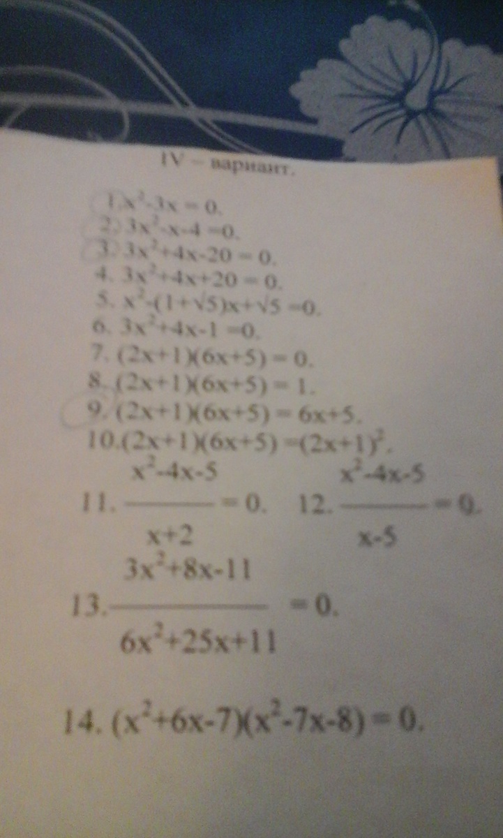 3х^2-x-4=0 тут уже по формуле дискреминанта(D) (a=3, b=-1. c=-4)