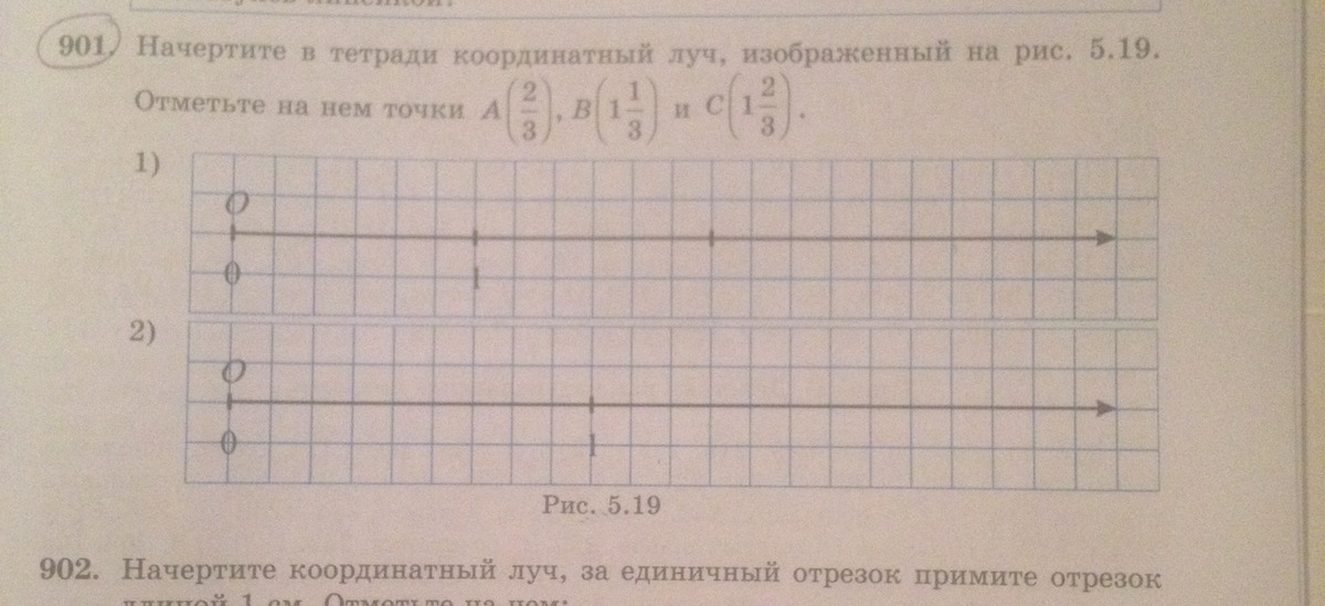 Начертите в тетради координатный луч, изображенный на рис. 5.19.