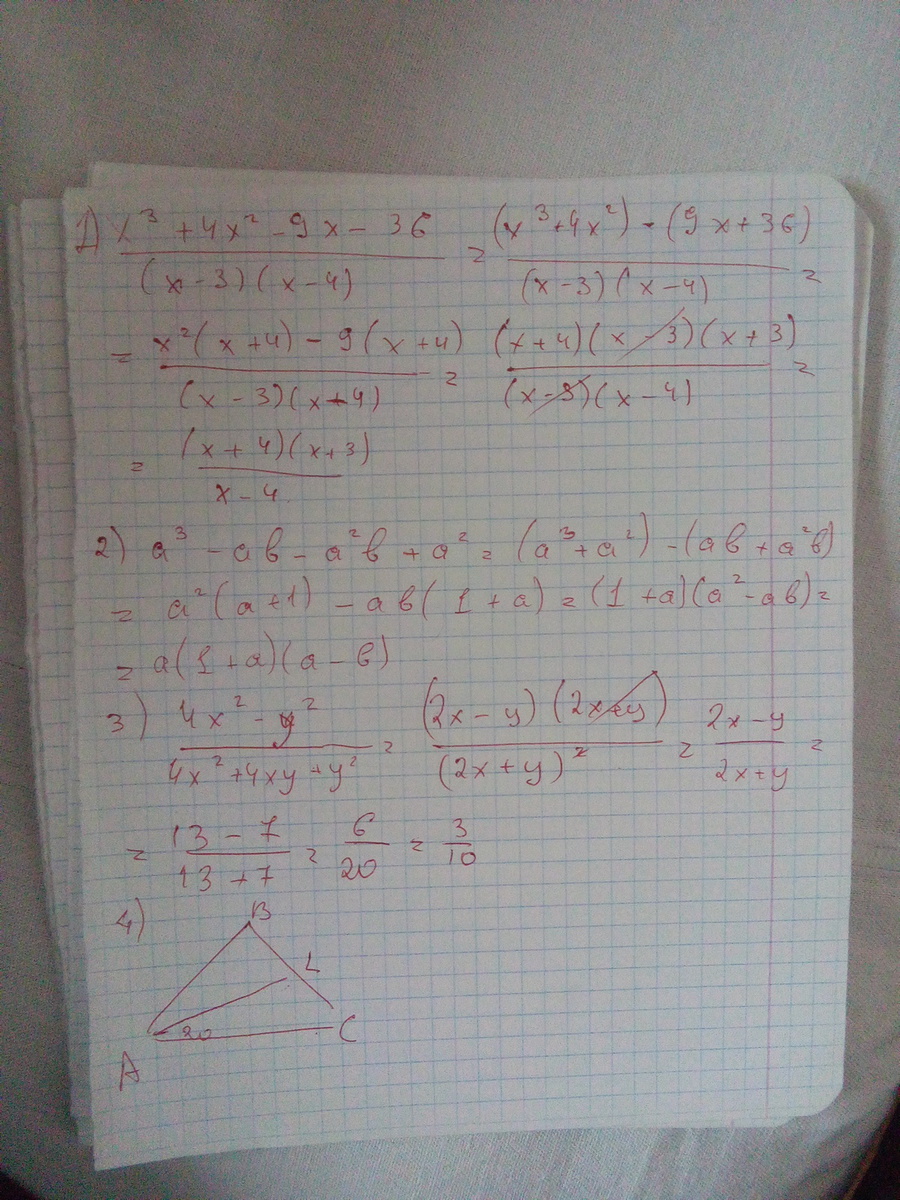 1) Сократите дробь x^3+4x^2-9x-36/(x-3)(x-4)