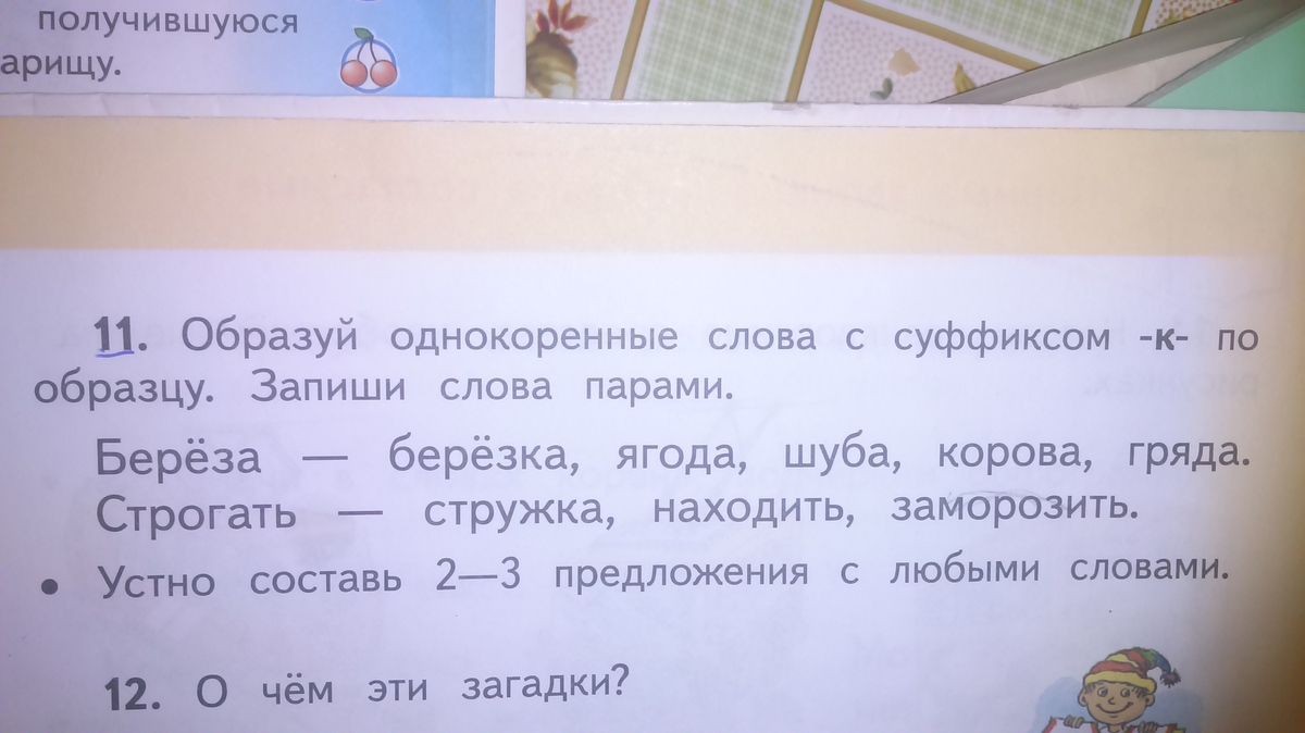 ягода -ягодка шуба- шубка корова -коровка гряда- грядка находить -находка заморозить- заморозка
