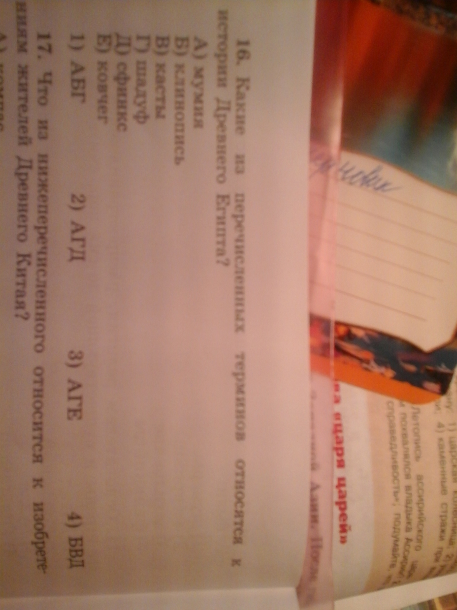 Вариант:2)а)Мумия;г)Шадуф;д)Сфинкс.