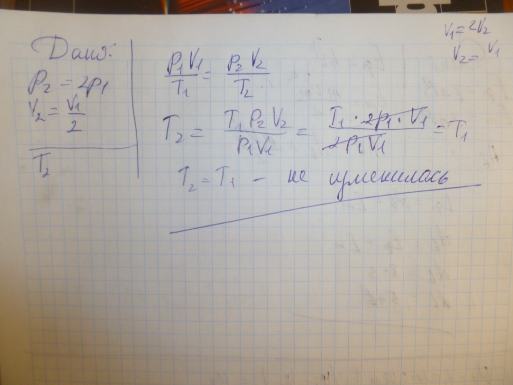 ИДЕАЛЬНЫЙ ГАЗ ПЕРЕВЕЛИ ИЗ ОДНОГО СОСТОЯНИЯ В ДРУГОЕ, УВЕЛИЧИВ ДАВЛЕНИЕ В 2 РАЗА И УМЕНЬШИВ В 2 РАЗА ОБЪЕМ. КАК ПРИ ЭТОМ ИЗМЕНИЛАСЬ ЕГО АБСОЛЮТНАЯ ТЕМПЕРАТУРА ???