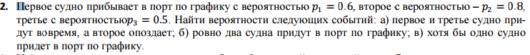 Б: "ровно два" значит либо первое - второе, либо второе - третье, либо первое - третье придут вовремя, а другое судно (третье по счету) опаздает