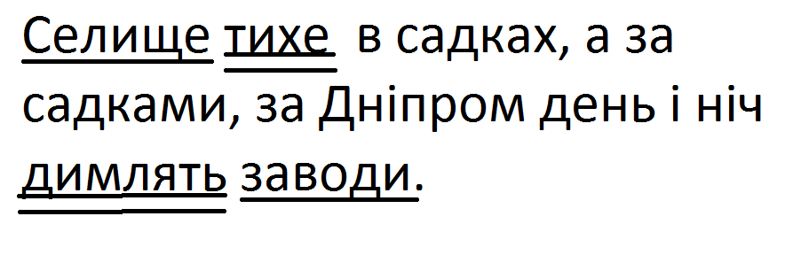 1-ша граматична основа "селище тихе", 2-га - "димлять заводи".
