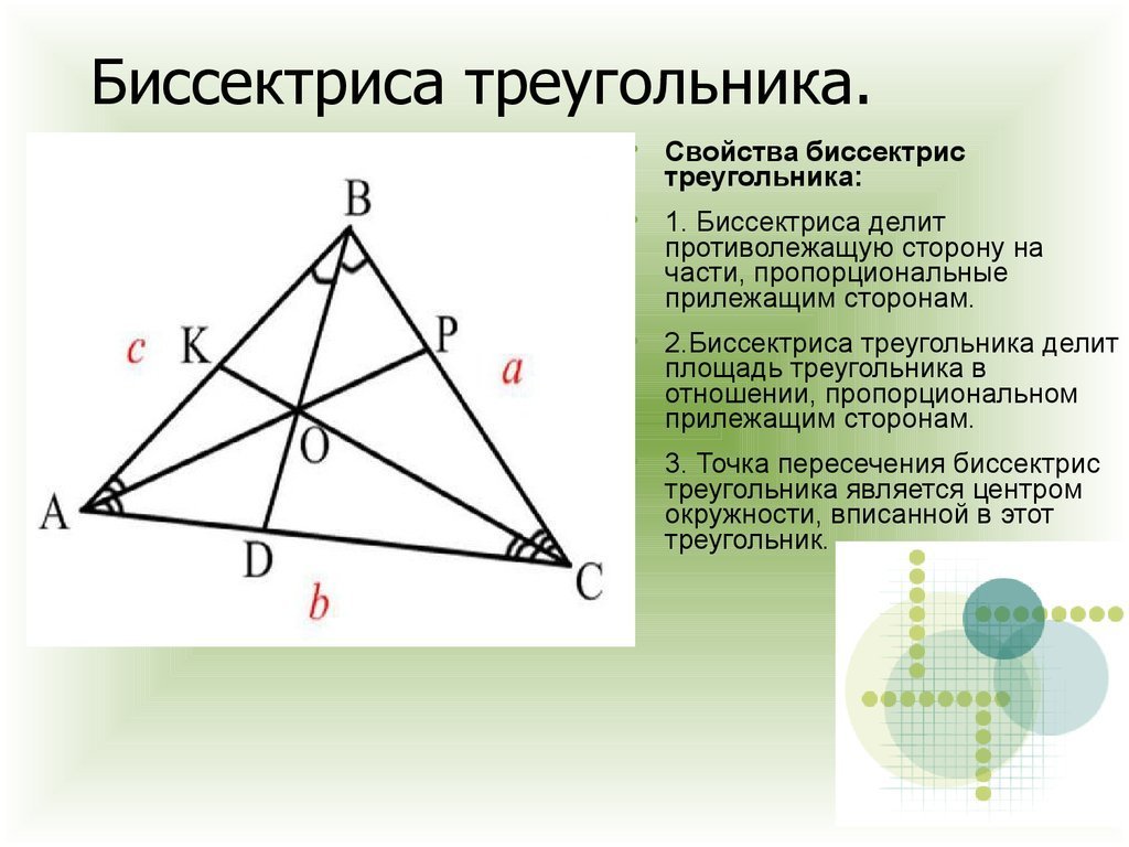 Биссектриса угла в треугольнике делит противолежащую сторону на отрезки, пропорциональные прилежащим сторонам
