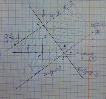 1) Найдем точки пересечения прямой 4х+3у-12=0 с координатными осями