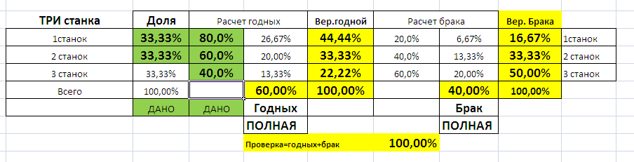 В таблице приведен расчет и ГОДНЫХ деталей, но он НЕ НУЖЕН.
