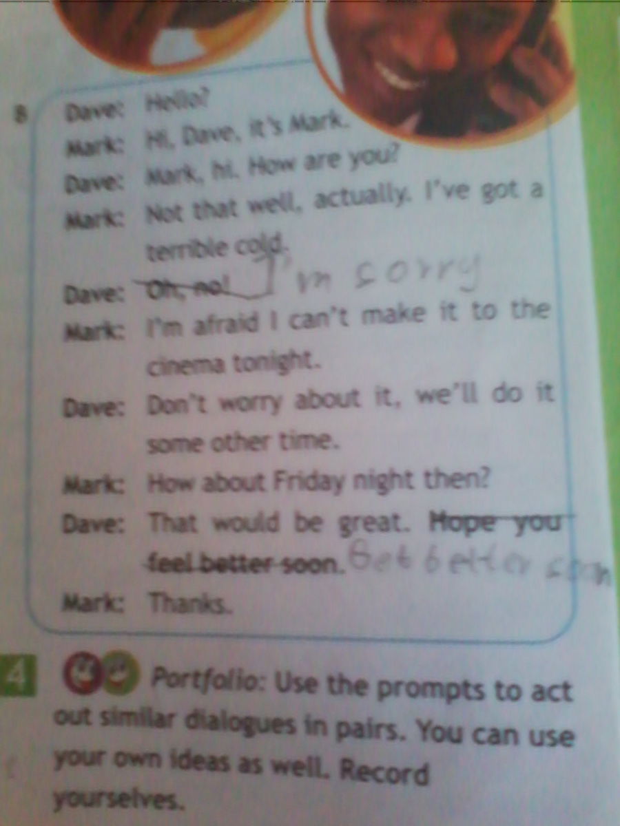 Дэйв: Это было бы прекрасно. Надеюсь ты скоро поправишься.