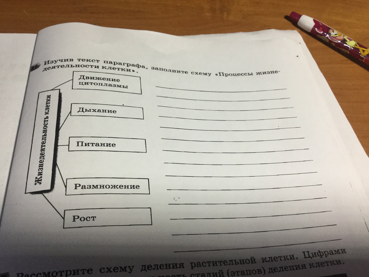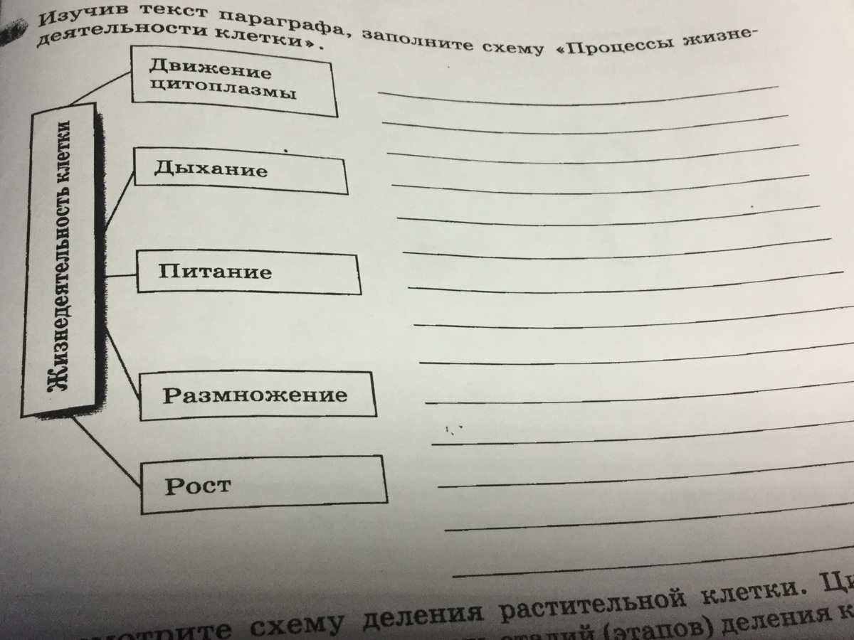 Изучив текст параграфа, заполните схему " процессы жизнедеятельности клетки".
