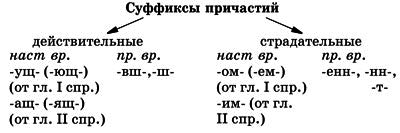-енн-, -нн-,-т-, -ем- (-ом-), -им-.