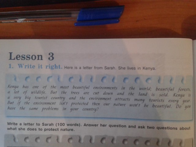 Кения имеет одну из наиболее прекрасных окружающих сред в мире, прекрасные леса, много дикой жизни. Но деревья сокращаются а земли распродаются. Кения очень большая туристическая страна и окружающая среда привлекает много туристов каждый год. Но если окружающая среда не защищена, тогда наша природа не будет прекрасной. Есть ли у вас такие же проблемы в вашей стране?