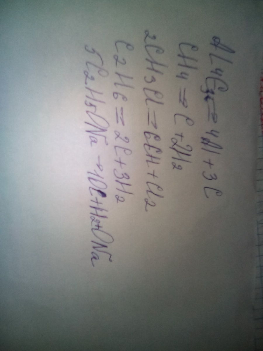 Напишите уравнения реакций с помощью которых можно осуществить превращение AL4C3->CH4->CH3CL->C2H6->C2H4->C2H5OH->C2H5ONa Помогите пожалуйста,от этого зависит оценка в зачетку(((