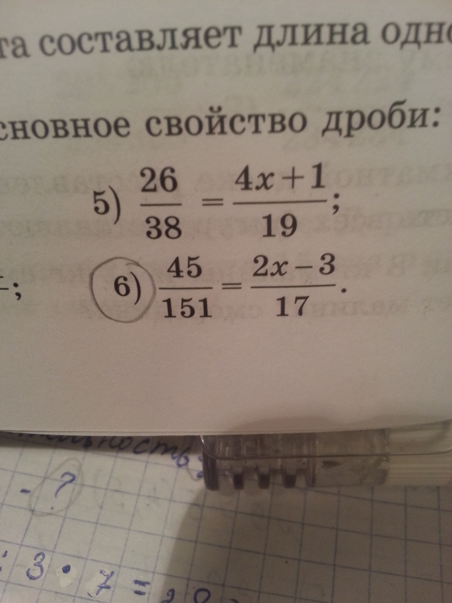 frac{45}{151} = frac{2x-3}{17} ; \  151*(2x-3)=17*45; \ 302x-453=765; \ x= frac{765+453}{151}=  frac{1218}{151} =8 frac{10}{151}