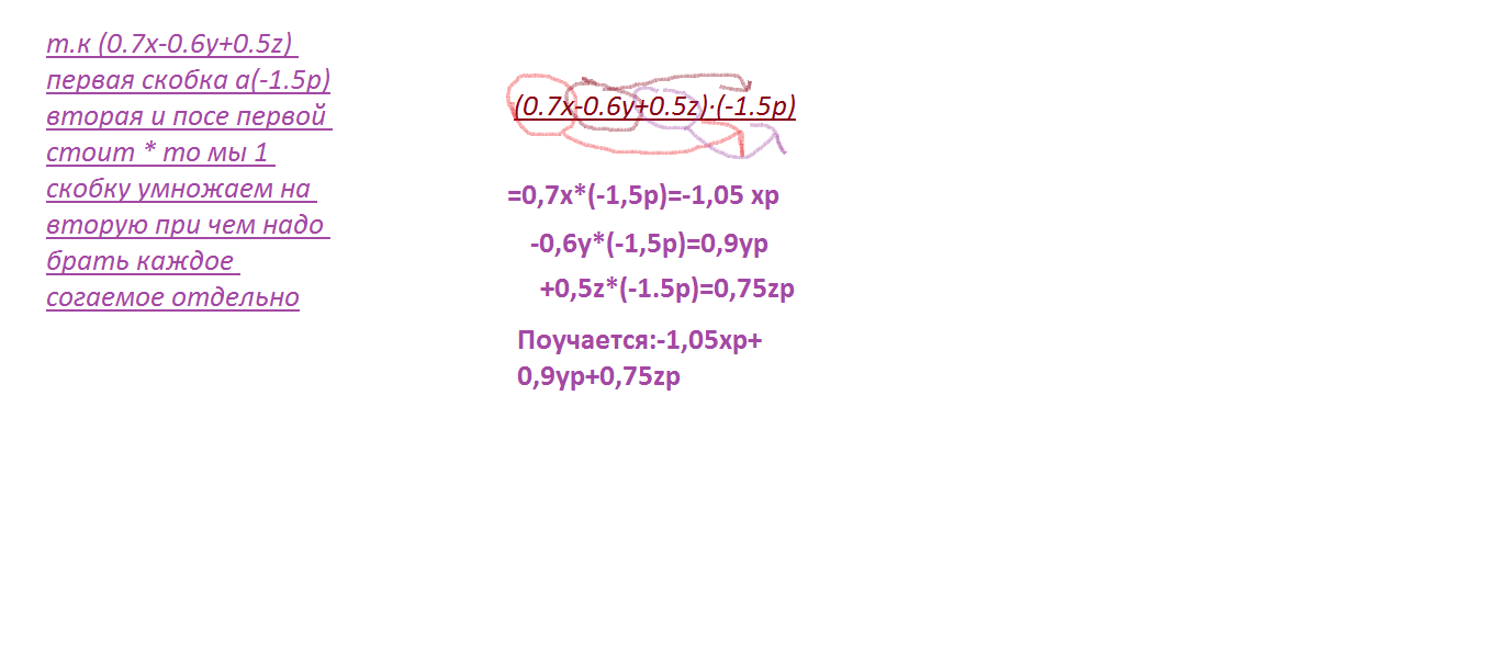 (0,7х-0,6у+0,5z)(-1,5р)=(0,6хуz)(-1,5р)=-0,9хуzр