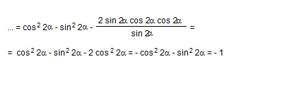 использованы формулы: косинус двойного угла, синус двойного угла, зависимость котангенса от синуса и косинуса, основное тригонометрическое тождество