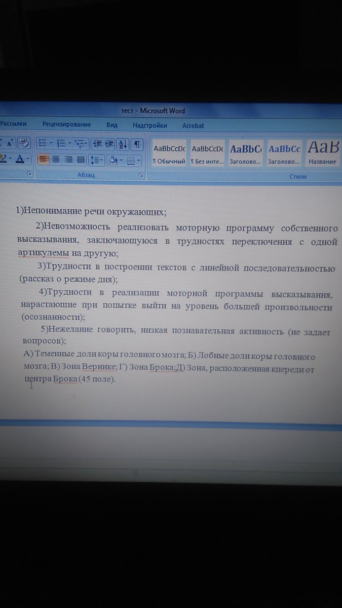 помогите соотнести нарушения речевой деятельности с нарушением отдельных зон головного мозга