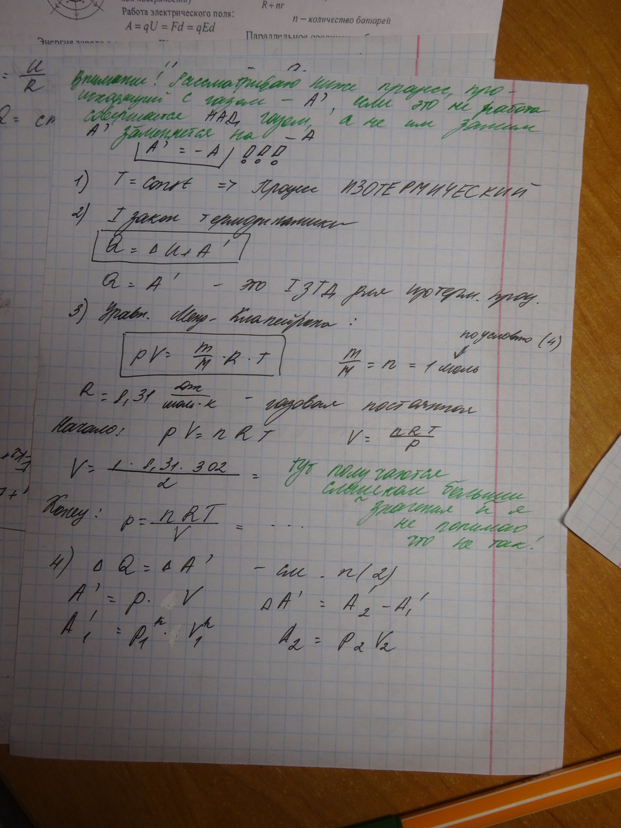 Попробуй рассмотреть то, что я написала, но у меня получаются нереальные результаты, но я не могу понять почему, т.к. мне кажется, что в теории все верно. Тебе дан изотермический процесс