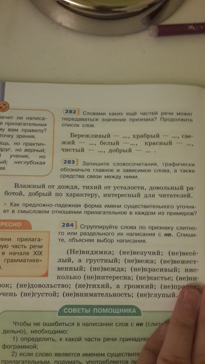 Влажный-главное от дождя зависимое, тихий- главное от усталости зависимое, довольный главное работой зависимое, добрый главное по характеру зависимое, интересный главное для читателя зависимое. Главное крестик сверху поставить надо и к зависимому стрелочку