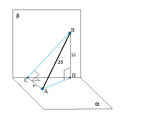 Концы отрезка АВ = 25 см расположены в перпендикулярных плоскостях α и