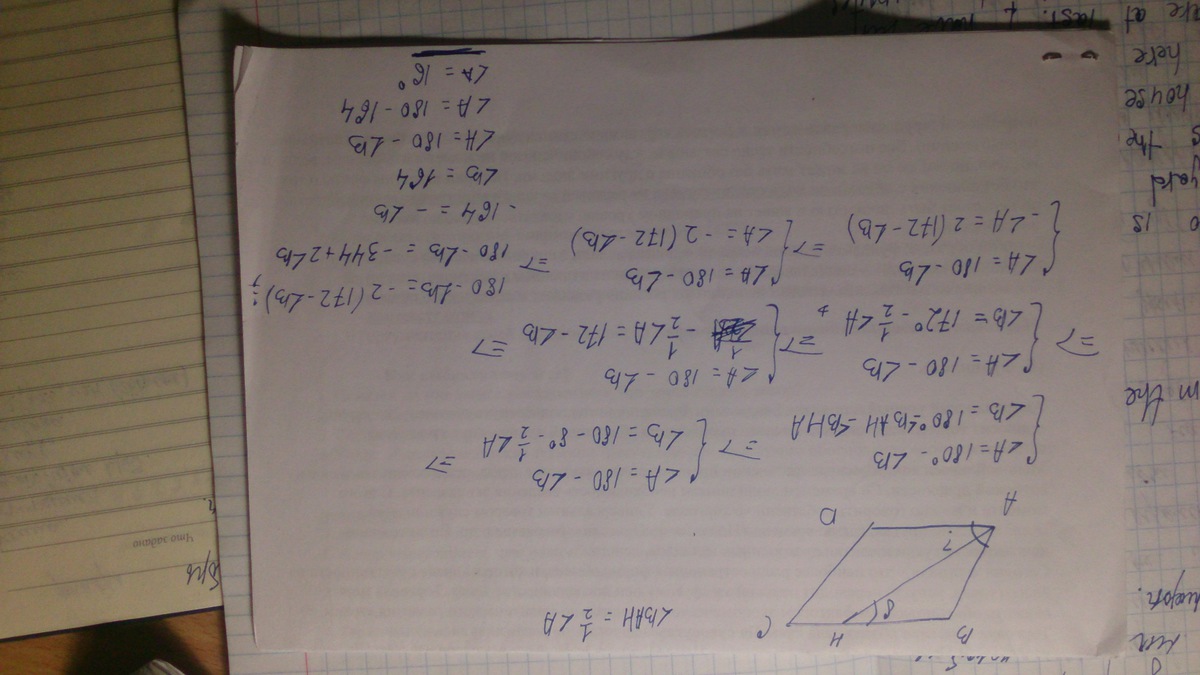 Биссектриса угла параллелограмма отсекает от него равнобедренный треугольник (свойство). Значит половина угла А равна 8°, а угол А=16°.