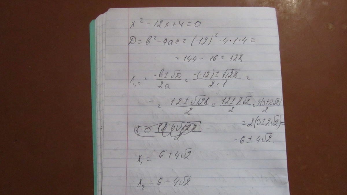 1) х(квадрат)-12х+4=0