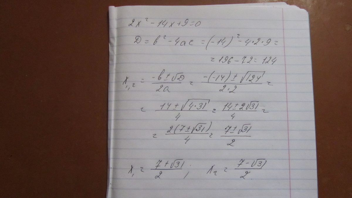 2) 2х(квадрат)-14х+9=0 Надо в обоих примерах найти по 2 корня. Помогите пожалуйста(буду очень признателен).