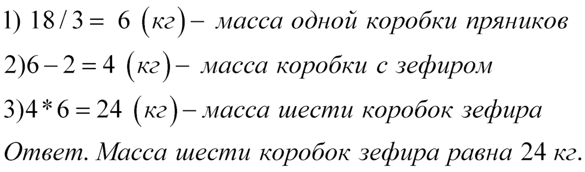 Масса трех одинаковых коробок с пряниками равна 18 кг. Коробка зефира на 2 кг легче коробки пряников. Сему равна масса шести коробок с зефиром?1) 18:3-2•6 2) (18:3-2)•6Выбери выражение, которое является решением данной задачи. Запиши решение задачи по действиям с пояснением.составь задачу с тем же сюжетом к доугому выражению.