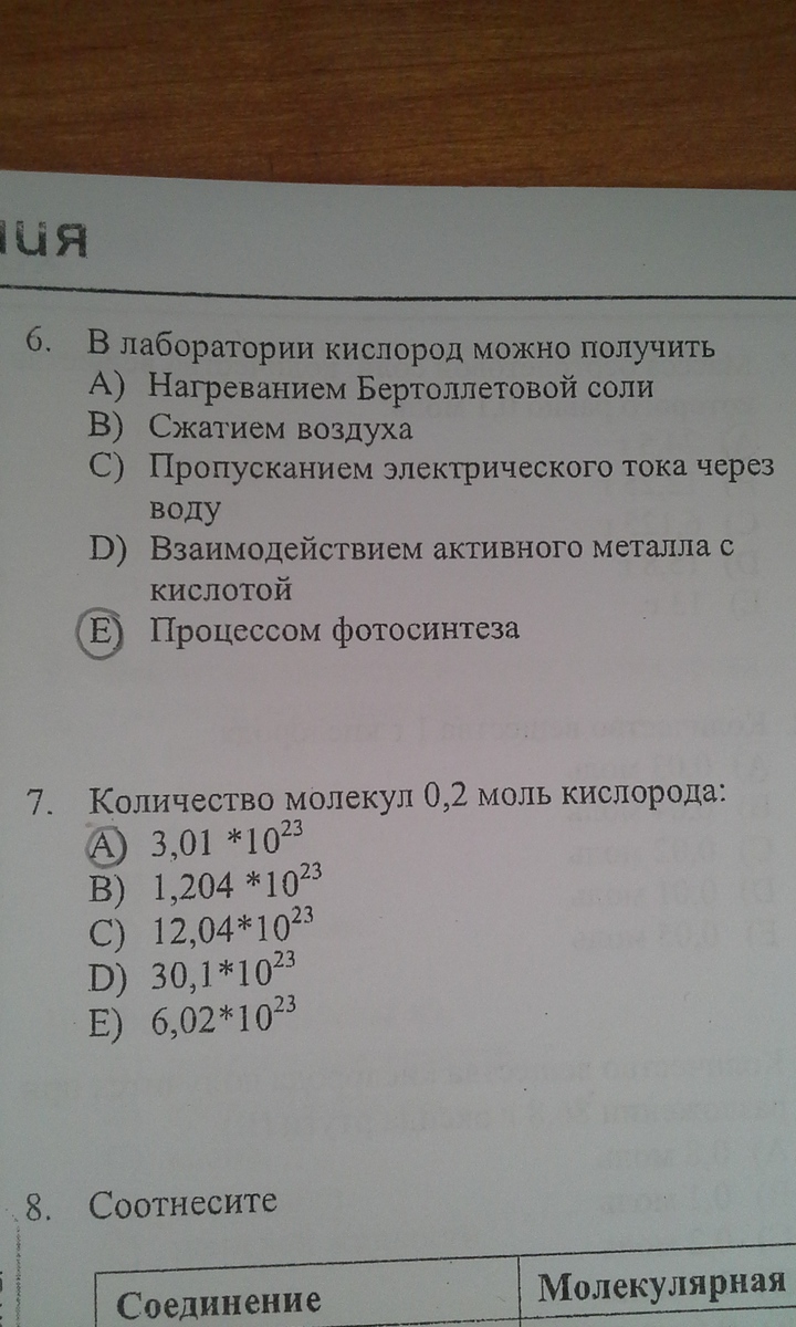 7. N(O2) = n·Na = 0,2 моль ·6,023·10²³ моль⁻¹ = 1,204·10²³ молекул