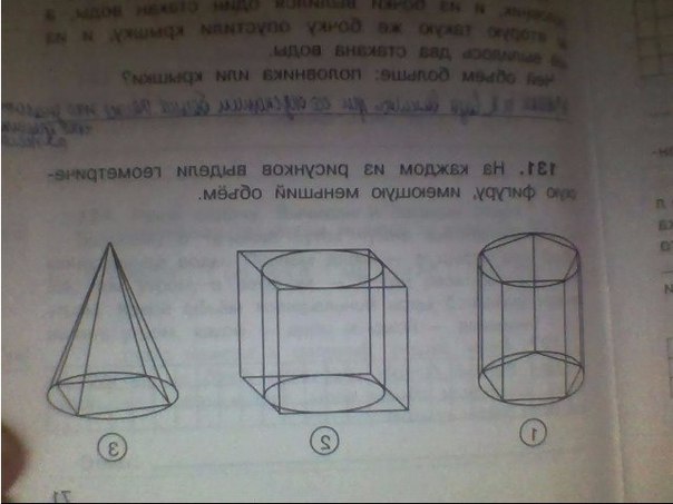 На каждом из рисунков выдели геометрическую фигуру имеющий меньший объём!?